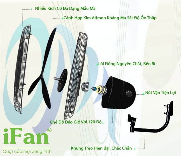 Quạt treo tường iFan NB-65 3 cánh còn được gọi là thiết bị làm mát công suất cao được bắt cố định trên tường chắc chắn đảm bảo an toàn và không chiếm diện tích trong không gian.